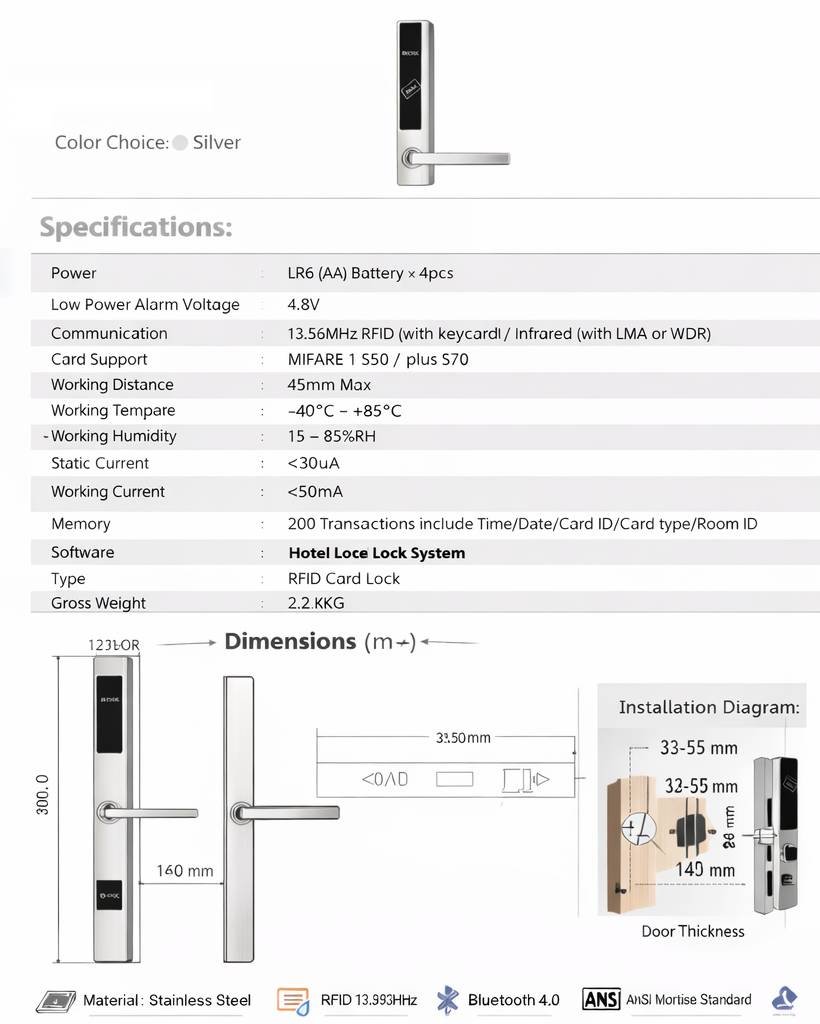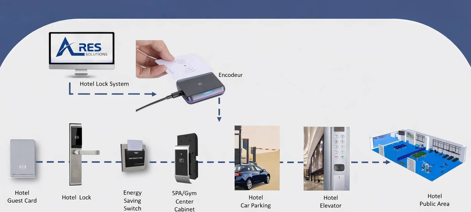 Grâce au Bluetooth 4.0, la serrure s’intègre parfaitement au système de gestion hôtelière (Hotel Lock System), facilitant la configuration, la gestion des utilisateurs et le suivi des accès.