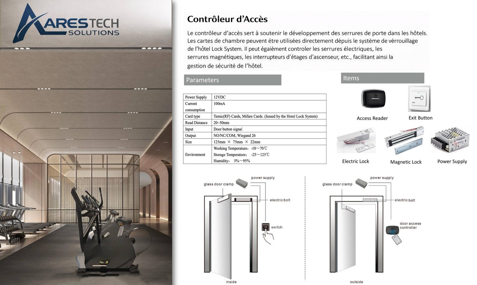 Le Contrôleur D’accès ARES Tech Solutions est une solution complète et intelligente destinée à renforcer la sécurité des hôtels, résidences et bâtiments professionnels. Conçu pour fonctionner avec le Hotel Lock System, il permet une gestion centralisée et efficace des accès.